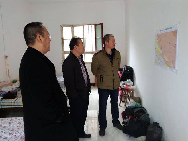 在曹坪駐地,王書記先后到食堂、宿舍察看,詳細詢問大家的生活飲食、住宿辦公條件情況。在和項目組干部職工座談時,王書記說,開展“兩學一做”學習教育,要結合工作開展學,結合我隊的發展學,結合自身的成長學,不斷提高自己的政治和專業素質。咱們黨員干部要給職工起好模范帶頭作用,榜樣的力量是無窮的,使隊伍充滿始終充滿正能量。要高度重視抓好野外安全生產。注意搞好與駐地地方等外部關系,注意抓好飲食衛生,讓大家吃好,才能工作起來有勁頭。