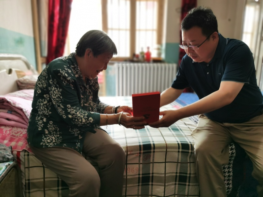 劉曉東一行來到有50年黨齡的老黨員秦啟萍家中,與老人親切交談,詳細了解其入黨經歷、工作履歷、家庭生活等情況,并為她送去“光榮在黨50年”紀念章,送上節日祝福,看到老人積極樂觀,劉曉東十分欣慰,叮囑她保重身體,安享晚年。